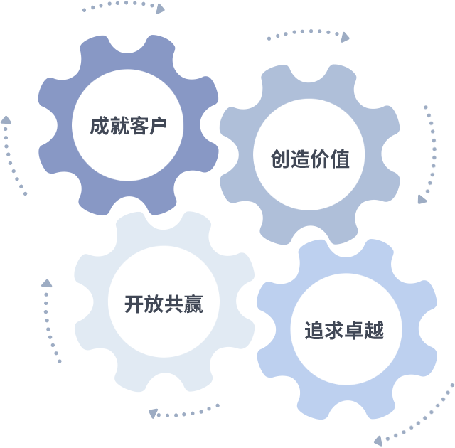成就客户是一切决策的出发点,创造价值是衡量所有工作的标准,追求卓越是15vip太阳集团做事做人的态度,开放共赢是15vip太阳集团的格局也是最终的结果。价值观的齿轮环环相扣,推动着组织里的每个人不断向前。